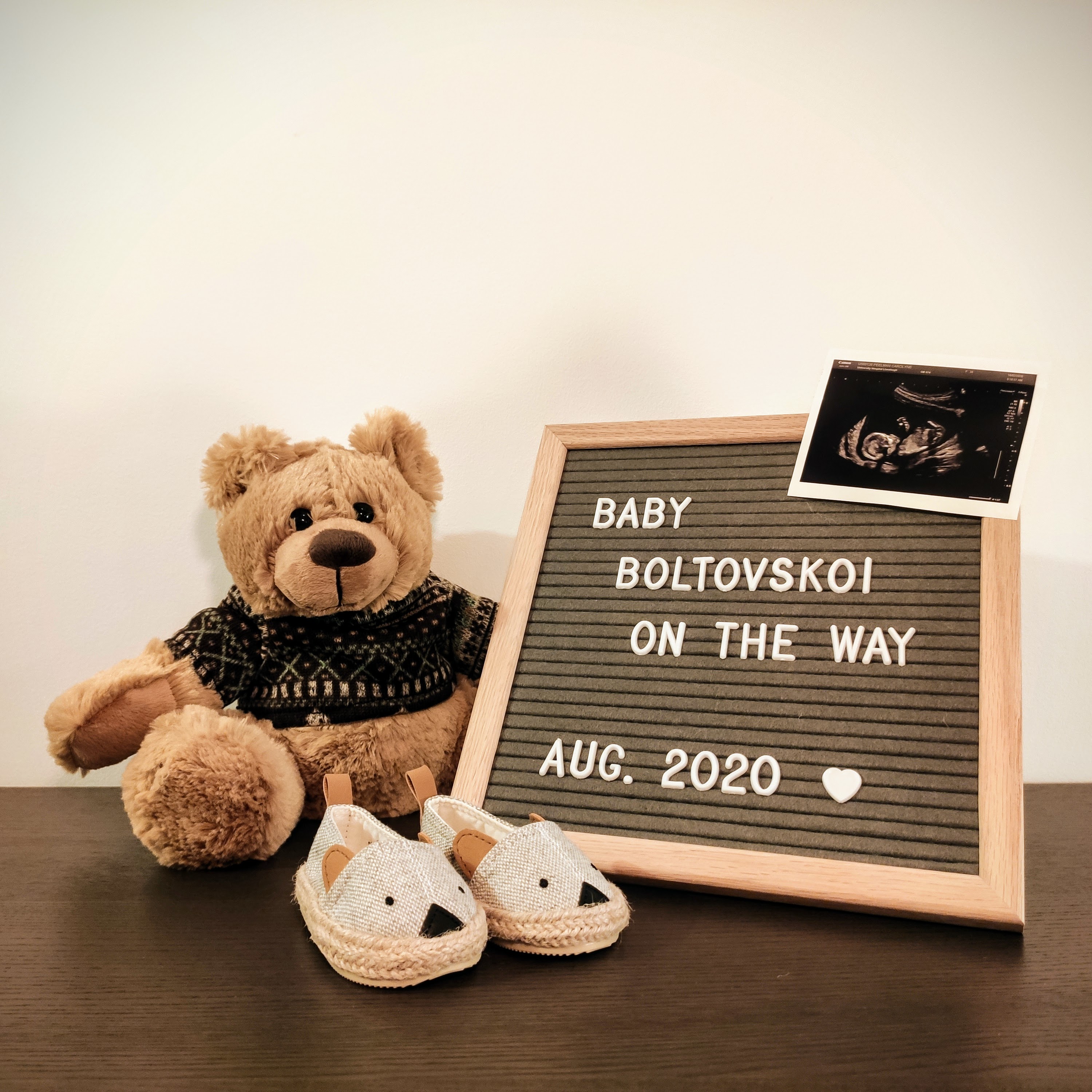 Exactly two months after we found out we were pregnant, we had our first ultrasound scan. They determined that you were 13 weeks and 5 days old and would be born around 20 August 2020. That weekend we announced your existence to the world.