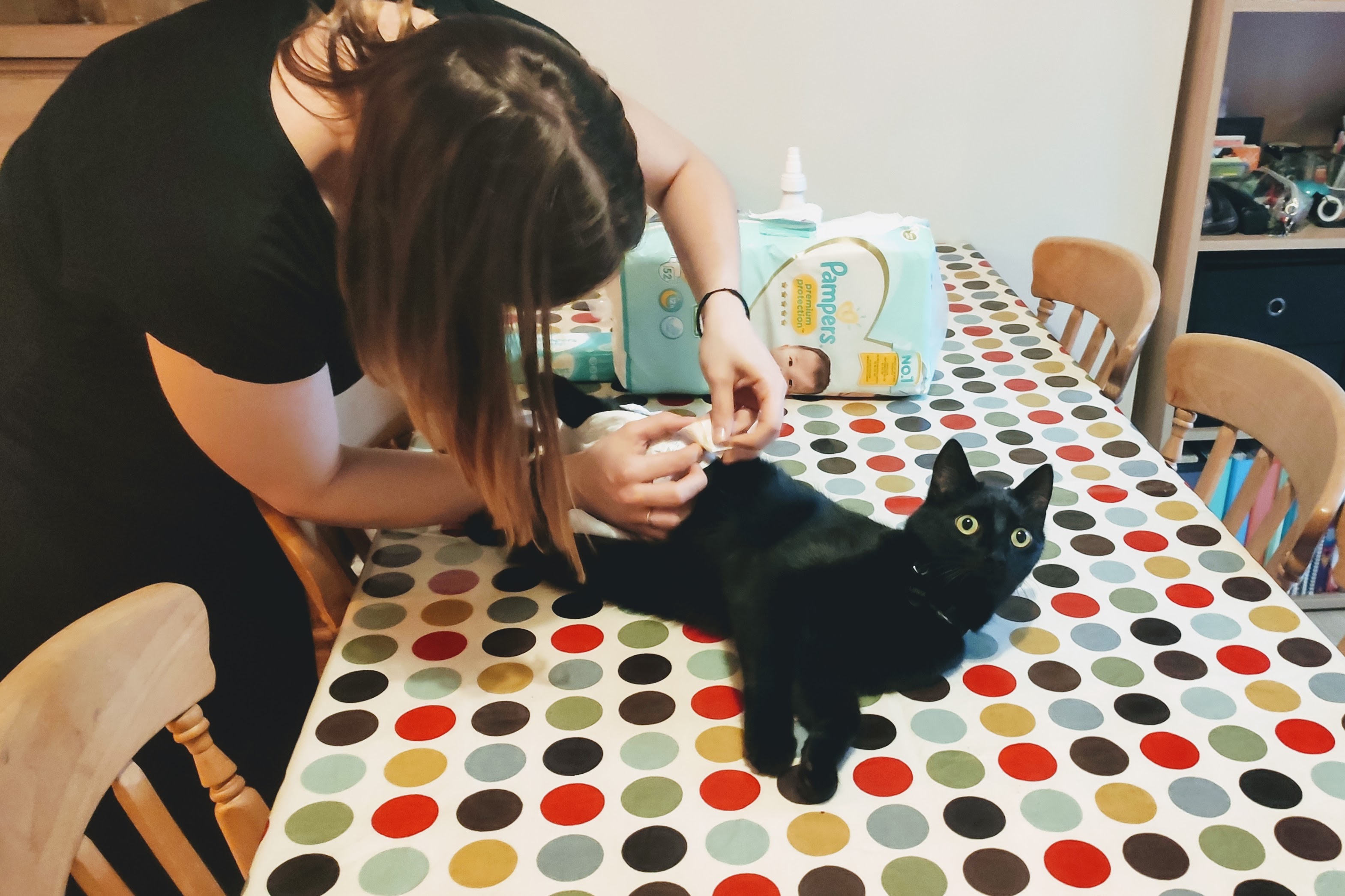As part of our preparations we made sure to be ready to change lots of dirty nappies. Lunik sort of volunteered to be our practice baby.